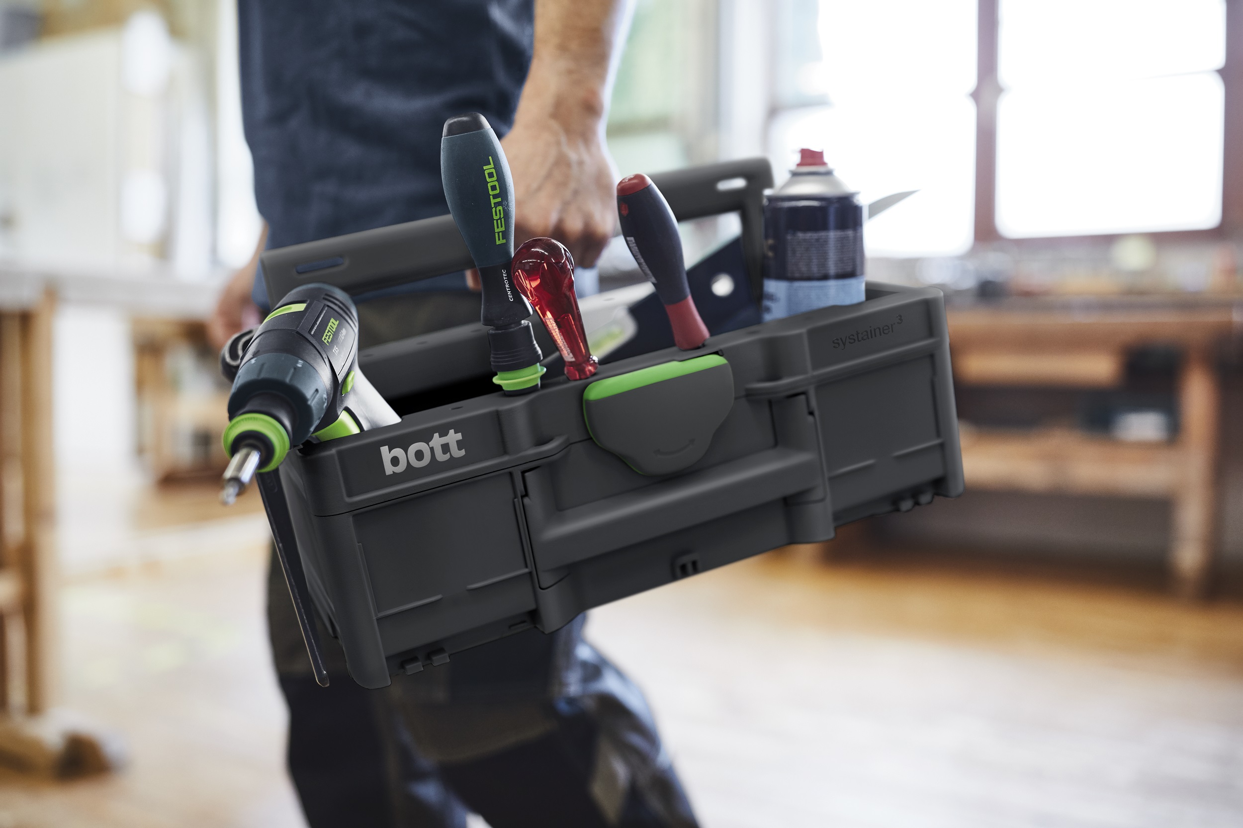 bott kehitti yhteistyökumppaneidensa Festoolin ja TANOSin kanssa uutta Systainer³ -salkkujärjestelmän Se helpottaa ammattitaitoisten käsityöläisten ja huoltoteknikoiden päivittäistä työtä. Kokeneina salkkujärjestelmien valmistajina panostimme runsaasti tietämystä uuteen tuotteeseen.